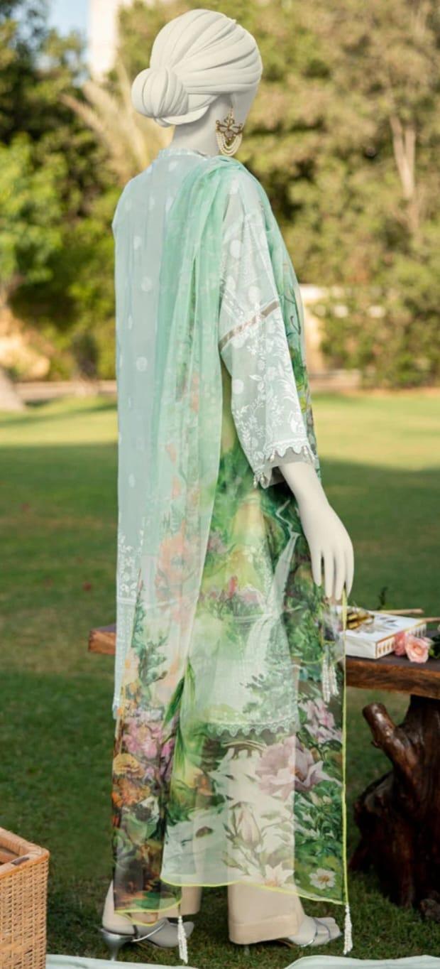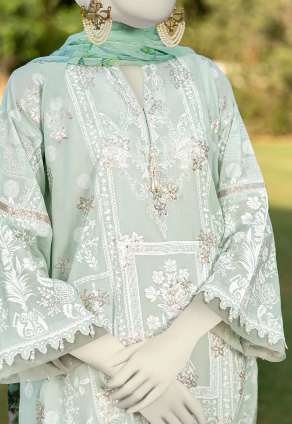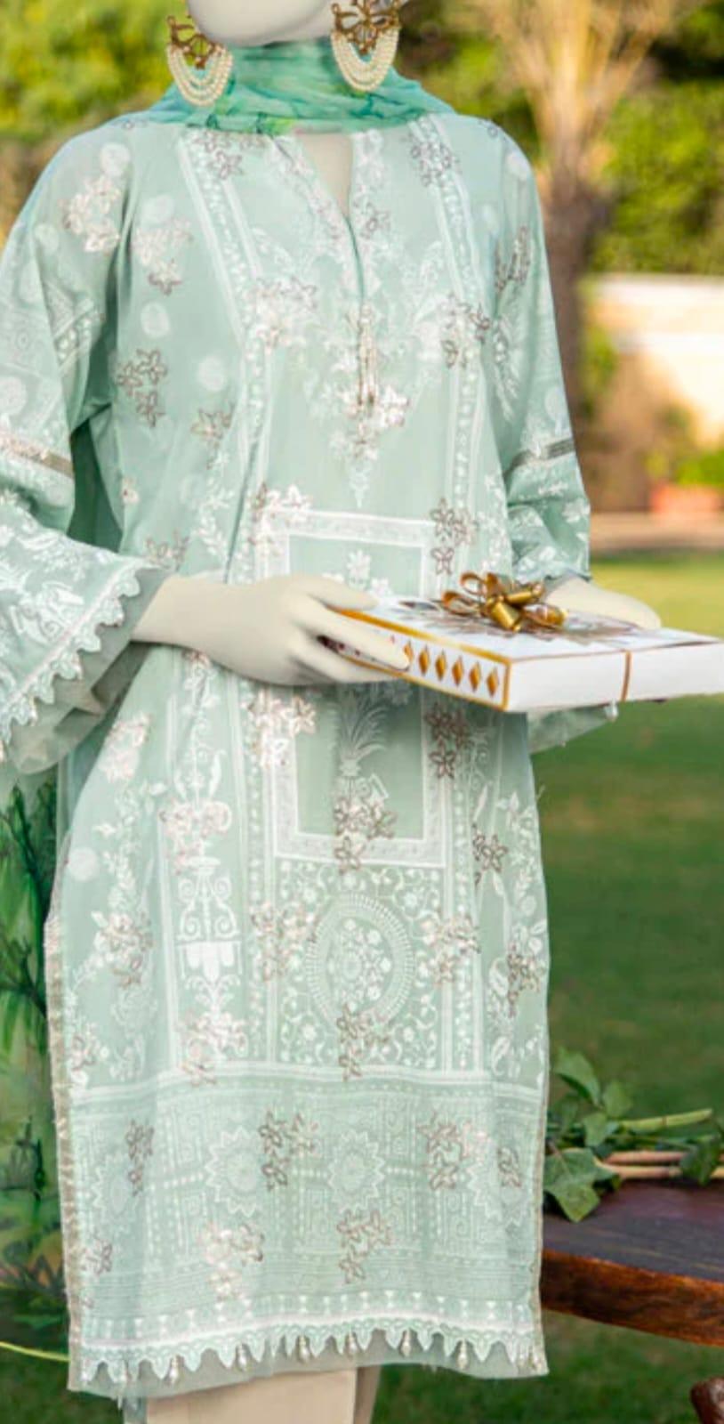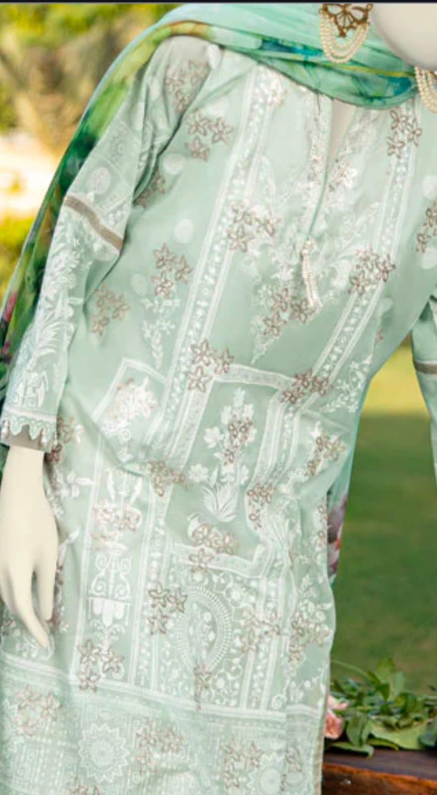 Dull sequance embroidered paste printed lawn shirt 1.75 Mtr