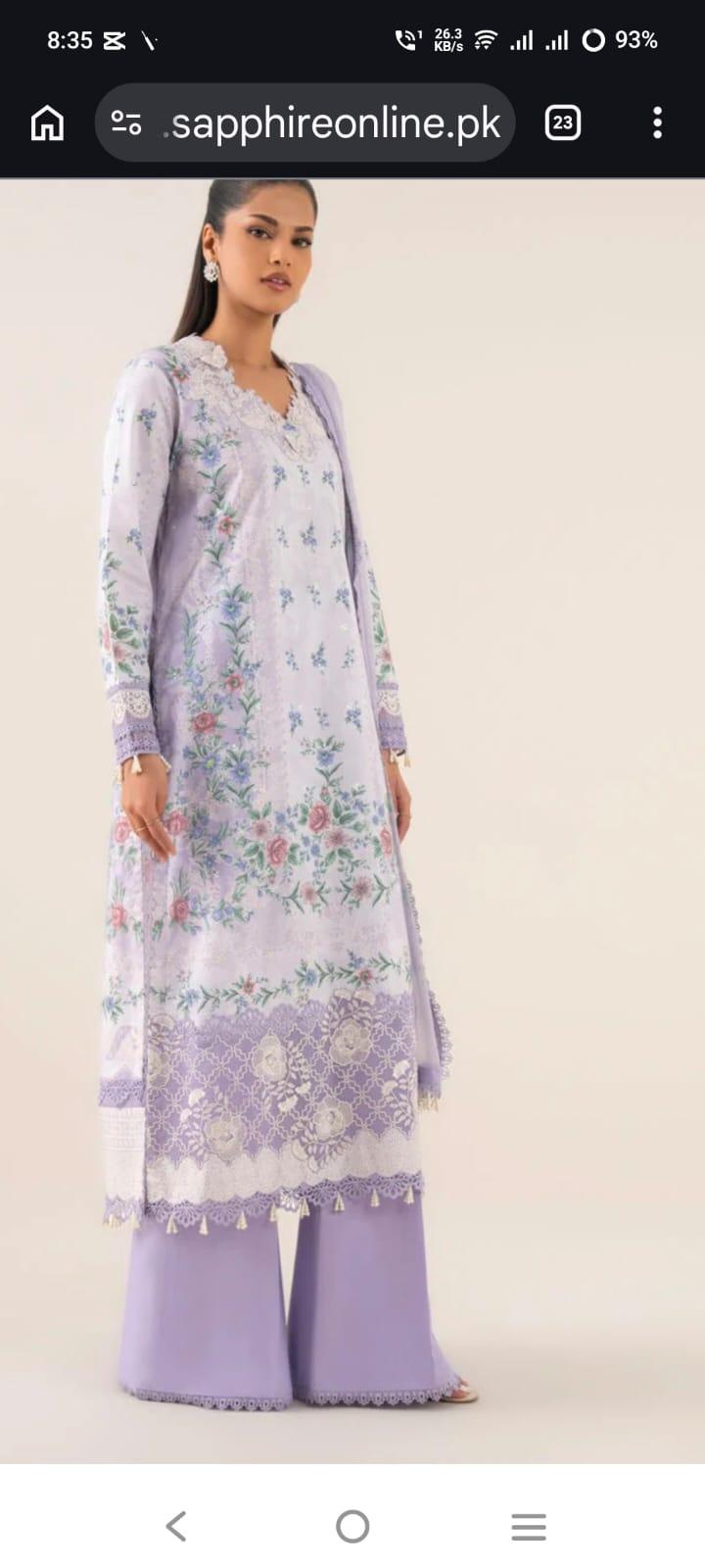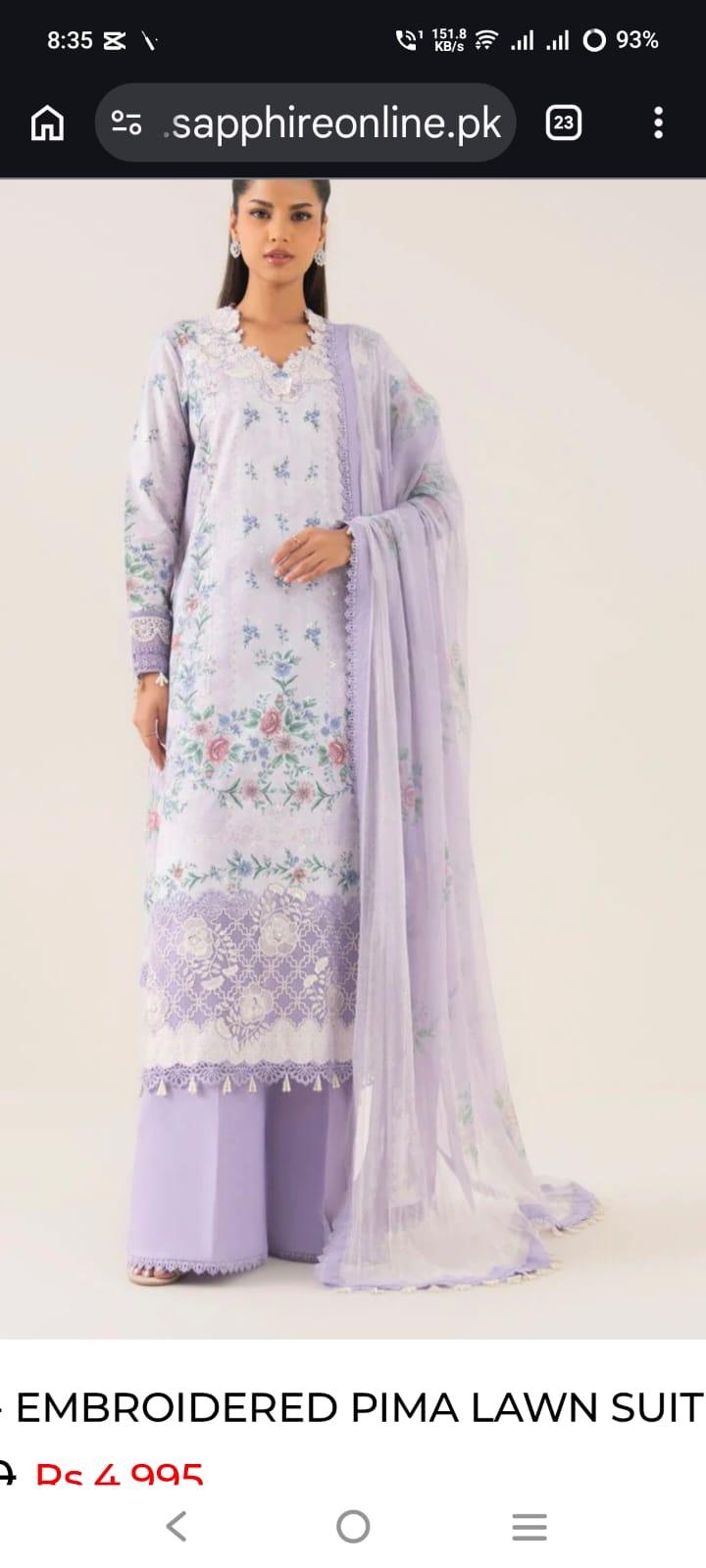 Printed embroidered pima lawn shirt front 1.15 Mtr
